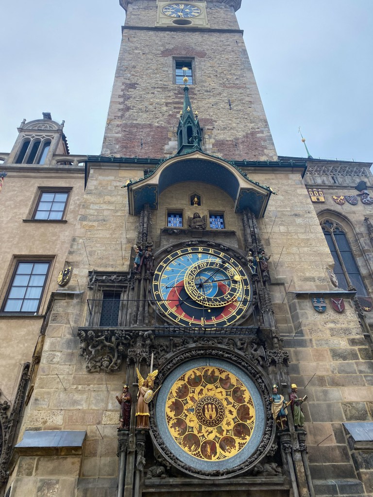 - RELOJ ASTRONÓMICO, además de indicar la hora del día, también indica los meses del año, los signos del zodiaco y las posiciones del sol y la luna. Cada hora en punto, de la parte superior salen los 12 apóstoles y se reúnen muchos turistas esperando a que el reloj marque la hora para verlos. Podéis visitar la torre del Reloj con esta entrada https://www.civitatis.com/es/praga/tour-subterraneo-ayuntamiento-ciudad-vieja?aid=101138